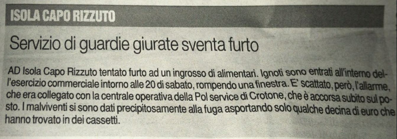 SERVIZIO DI GUARDIE GIURATE SVENTA FURTO.